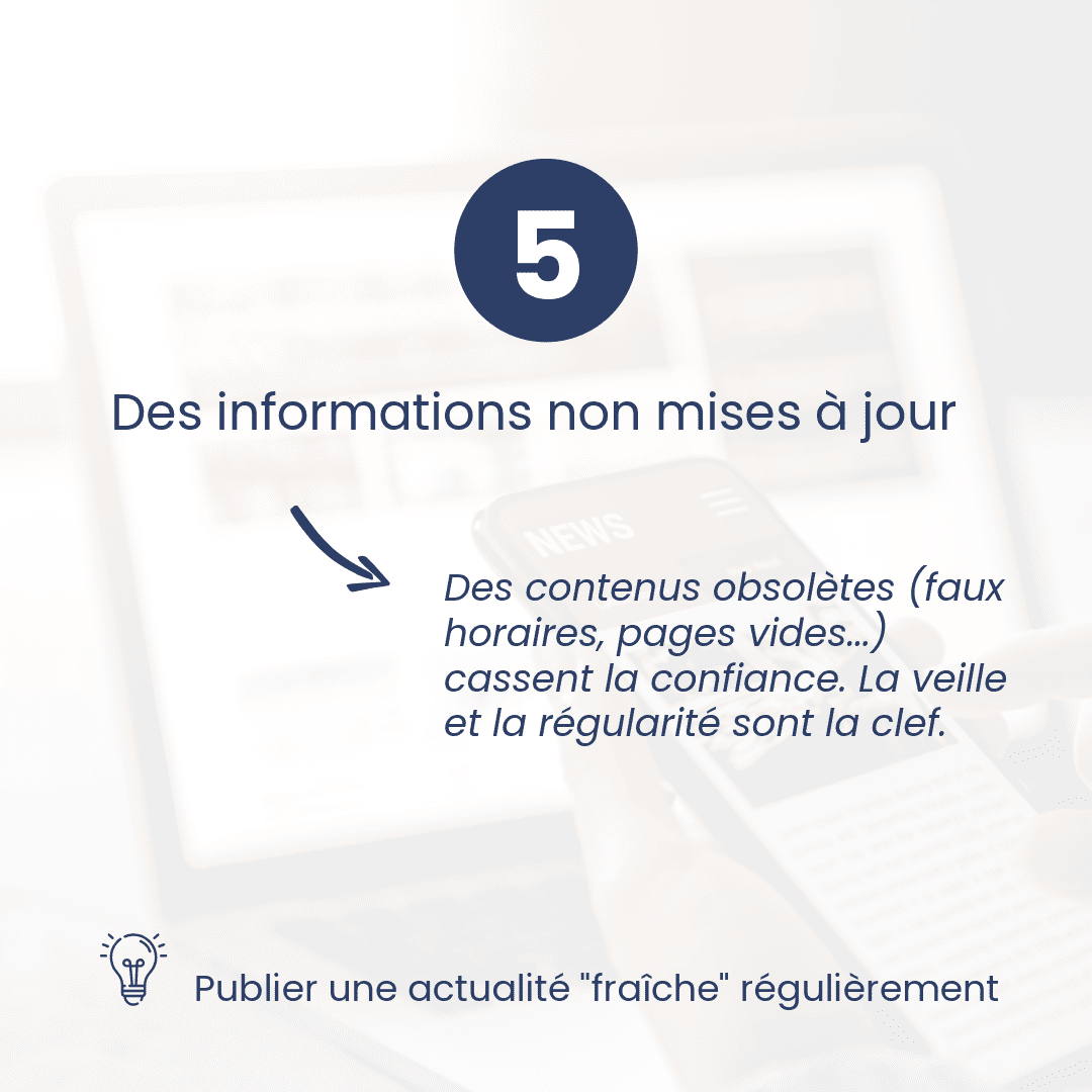 Voici 5 erreurs fréquentes qui pénalisent un site vitrine (PME, artisans, associations, collectivités) — et surtout comment les corriger.